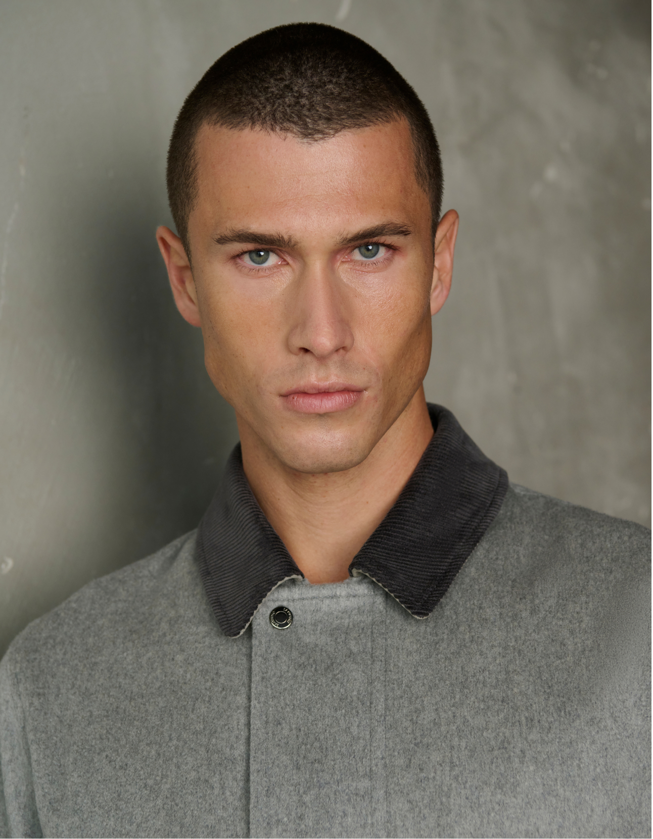 Chore Jacket in Cashmere with Corduroy Collar and Suede Leather Details.